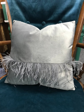 Grey Velvet and Feather Cushion