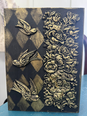 Round Black Deco Resin box with Gold Heart on top
