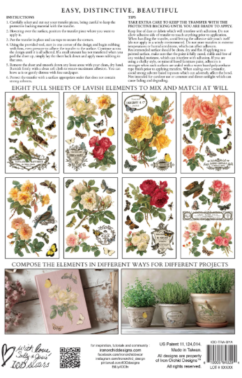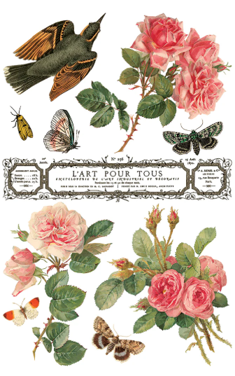 Using the illustrations of Paul De Longpré, the By Any Other Name – 8-Page 8x12" Transfer Pad features a classic collection of roses paired with birds and butterflies. Sally sourced the antique prints directly from a dealer, selecting from a book of De Longpré’s rose studies. A contemporary of Katarina Klein, his work was often compared to hers for its expressive handling of botanicals, though each artist had a distinct approach. We curated a selection of prints that preserved the character and detail of his original compositions.