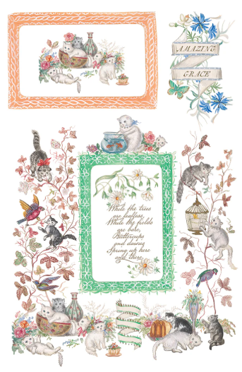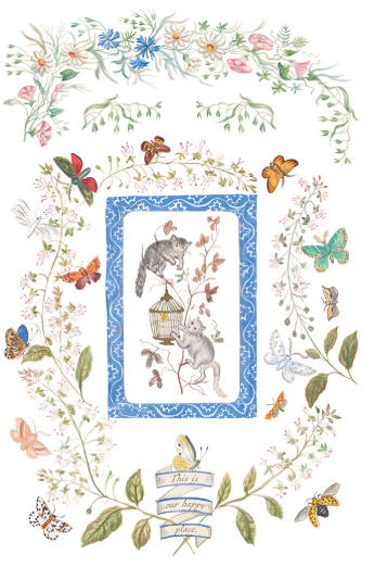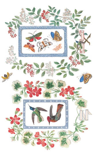 The Emily Claire – 8-Page 8x12" Transfer Pad comes from one of our favorite archive finds to date. Taken from an 1868 family album belonging to Miss Emily Clare Harvey, the artwork began as her pencil and watercolor illustrations lovingly added around her family’s portraits. The Cooper Hewitt preserved the album, and when we discovered it, Sam (our Senior Designer) and Sally immediately fell in love with its whimsical, beautifully hand-painted details. The set includes charming elements like kittens, hummingbirds, butterflies, banners, and even a proud little rooster—each one quirky, delicate, and full of character.