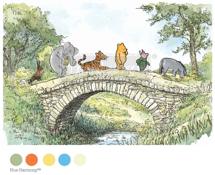 A gentle parade of woodland friends crosses an old stone bridge in Willowmist Meadow, creating a scene that feels lifted from the pages of a beloved vintage storybook. The expressive characters—an earnest bear, a striped companion, a cheerful piglet, a thoughtful donkey, and more—are illustrated in soft pen-and-wash style, set against rolling greenery and a quiet brook below. Printed on premium A3 fiber decoupage paper, the artwork lays beautifully onto larger surfaces such as furniture panels, cabinet doors, wall art boards, trays, and keepsake boxes, offering rich color without wrinkling or tearing. This design brings warmth, nostalgia, and a touch of whimsical adventure to any creative project.