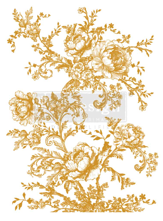 Opulent and refined, Églantine Elegance offers grand golden florals and motifs with a radiant foil effect. Perfect for large furniture pieces, mirrors, and decorative panels, this transfer creates a glamorous centerpiece for holiday or year-round décor.