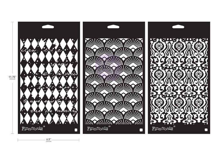 This set includes a classic fan motif, a detailed vintage wallpaper look, and a harlequin pattern overlaid with handwritten script. Whether you’re building backgrounds or adding quick texture, these stencils bring strong visual interest with very little effort. Whether adding a chic café-style look to furniture, creating statement wall art, or enhancing fabric and Décor pieces, this design blends seamlessly with both modern and vintage aesthetics.